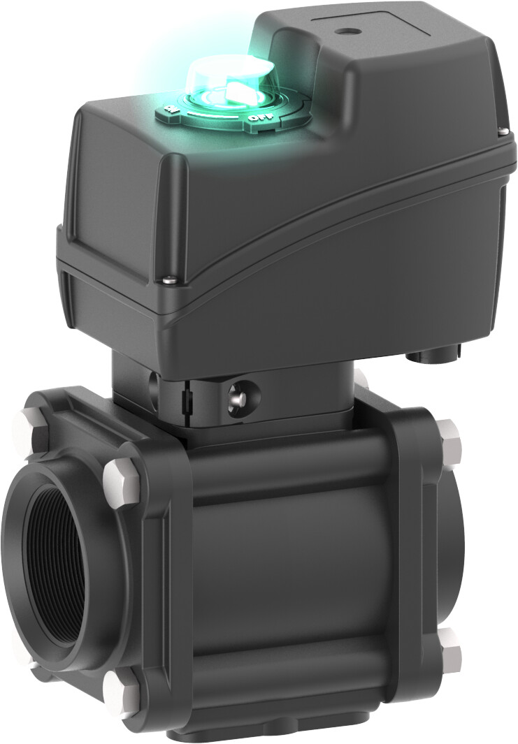 Valvole elettriche a sfera con tiranti, 2 vie con attacchi filettati.