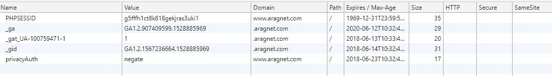 Third-party cookies are used by third-party companies and allow the user to display advertising banners on other affiliate sites showing the latest products displayed on the site www.aragnet.com.